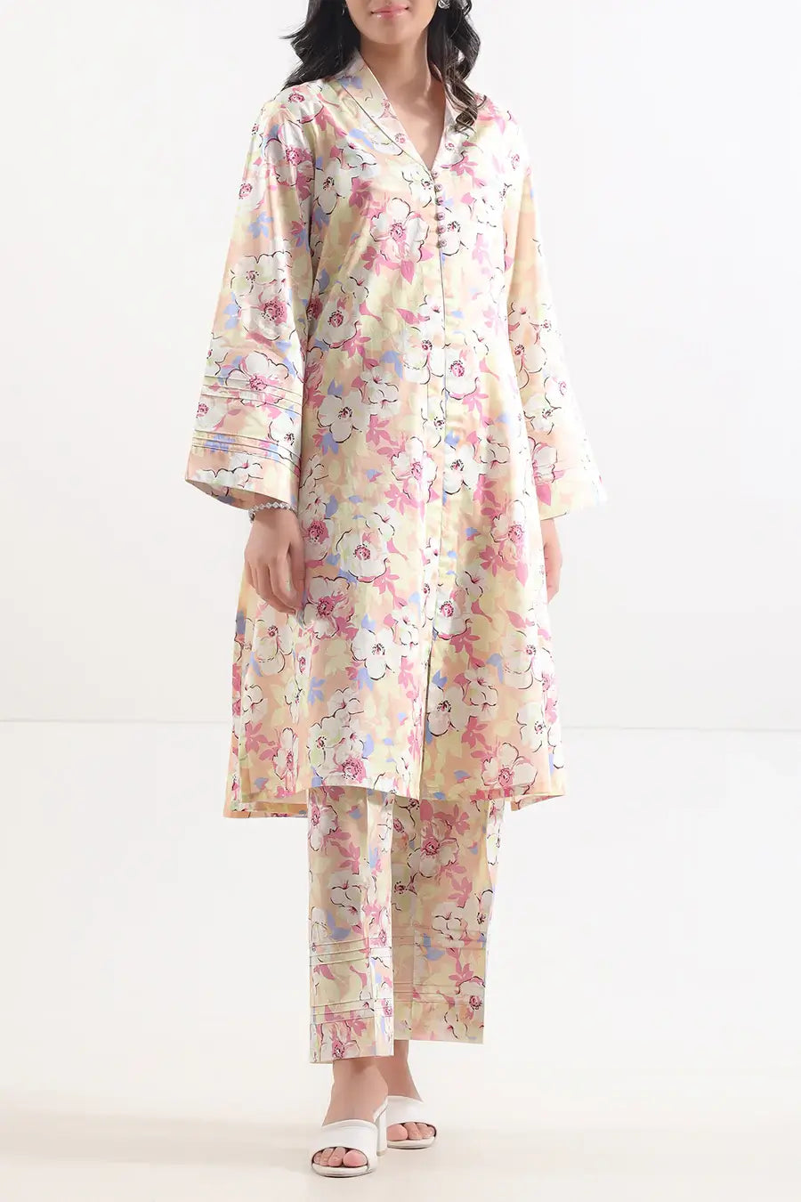 Unstitched Printed Lawn 2 Piece White (Shirt/Trouser)