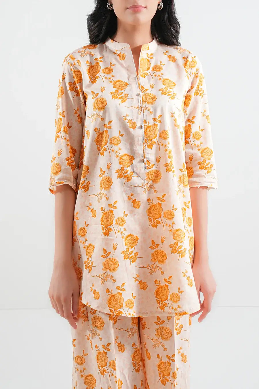 Enhance your summer wardrobe with Saya’s unstitched printed lawn 2-piece cream suit. Crafted from soft, breathable lawn fabric, the shirt showcases elegant floral patterns for a refined and timeless look. Paired with a premium printed cambric trouser, this set offers comfort and effortless style perfect for daily wear, casual outings, or light social gatherings during warm weather.