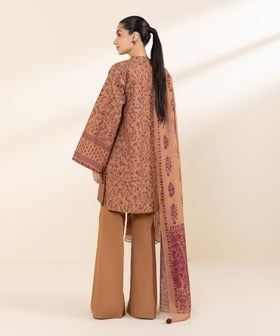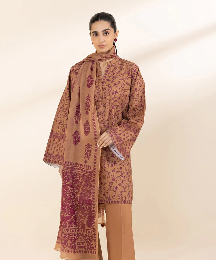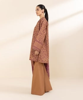 Elevate your wardrobe with our sunburn and plum printed two-piece featuring cambric shirt and trouser
