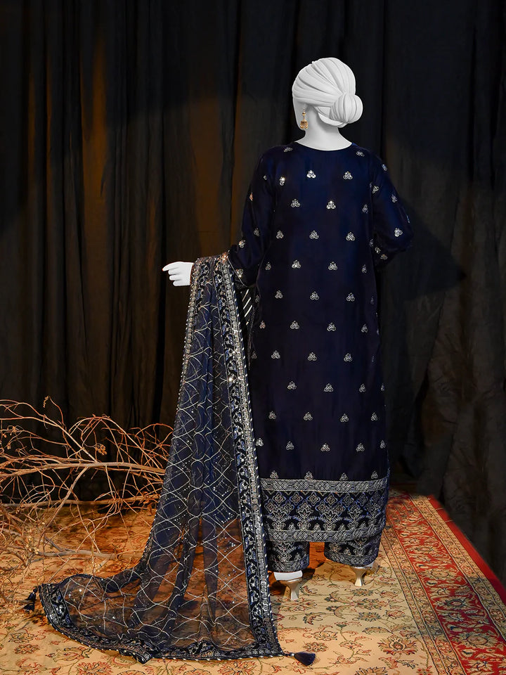 Ready-To-Wear Dupatta, Net Base With 4 Side Embroidered Velvet Borders, 2.50 M